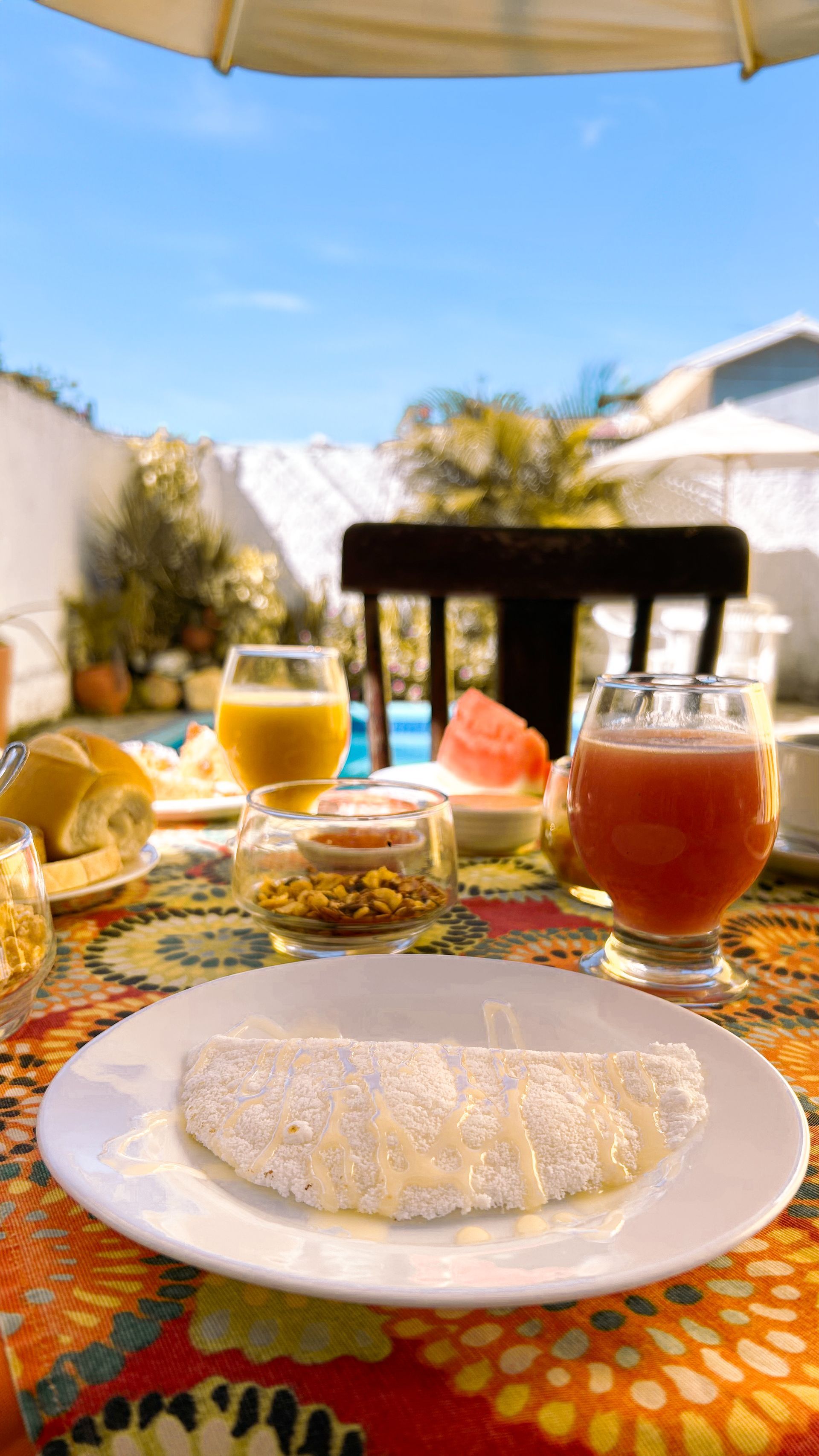 Comece o dia com um café da manhã especial na Pousada Aguamarinha! Uma variedade de delícias fresquinhas, desde frutas e sucos até pratos quentinhos, tudo preparado com carinho para te dar a energia perfeita para explorar Porto de Galinhas. Desfrute de cada sabor em um ambiente relaxante e cheio de charme. Horário de funcionamento: das 07 às 09hs da manhã.